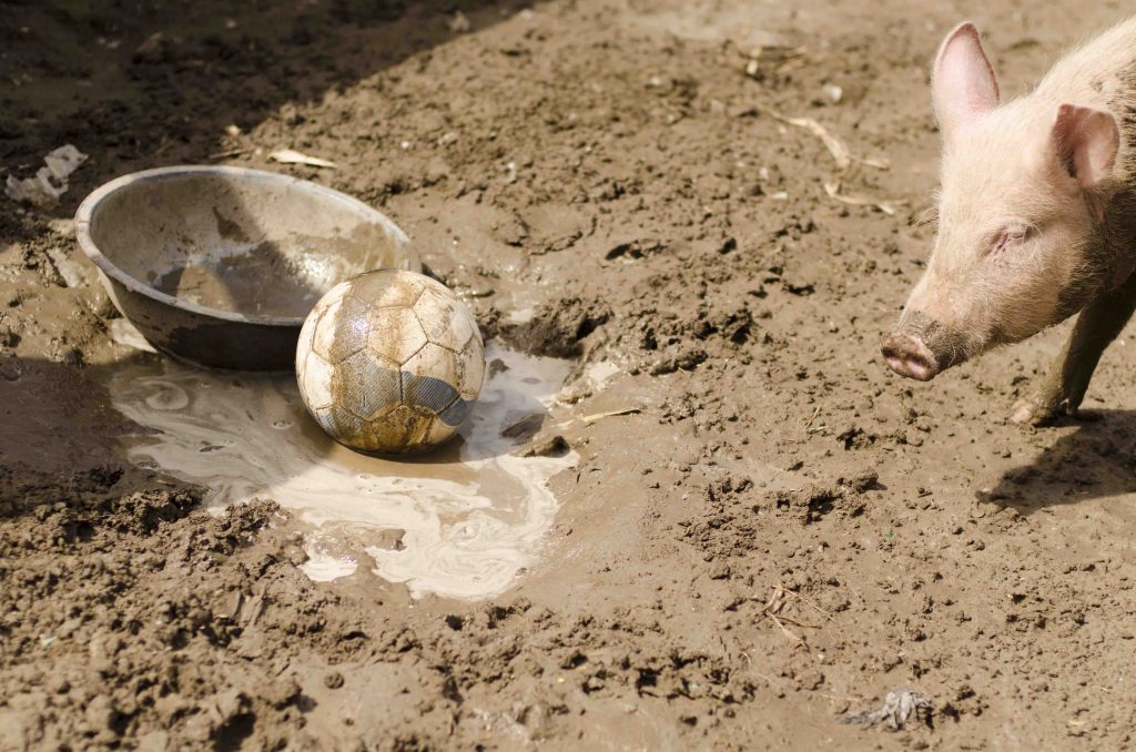 It was in 2002, that Gurinder Chadha’s Jess won our hearts when she “Bent it like Beckham”, and now in 2017 we have Bhondu winning hearts with his game. Today the young and strapping Bhondu reigns over Beejom, where he shares a cute little hutment with big brother Chandu. Most of the time Bhondu and his precious football can be seen tramping around the farm. He is often joined in his play by the boys who work in the farm and clearly adore him! After a game of soccer, Bhondu loves to cool down in mud puddles where he catches his best sleep. He also loves going swimming in the farm’s small millpond during the hot summer months.
