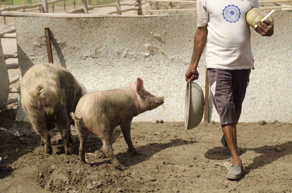 Bhondu’s favorite meal is the winter squash (kaddu) grown on site, which he prefers stolen from the plate of big brother Chandu. When we visited him recently, we witnessed him running to hide his own share and coming back to steal from Chandu who half-heartedly protests and swipes at the incorrigible Bhondu. The two are fast friends and inseparable, showing a social & emotional connect that studies have often claimed pigs highly capable of.