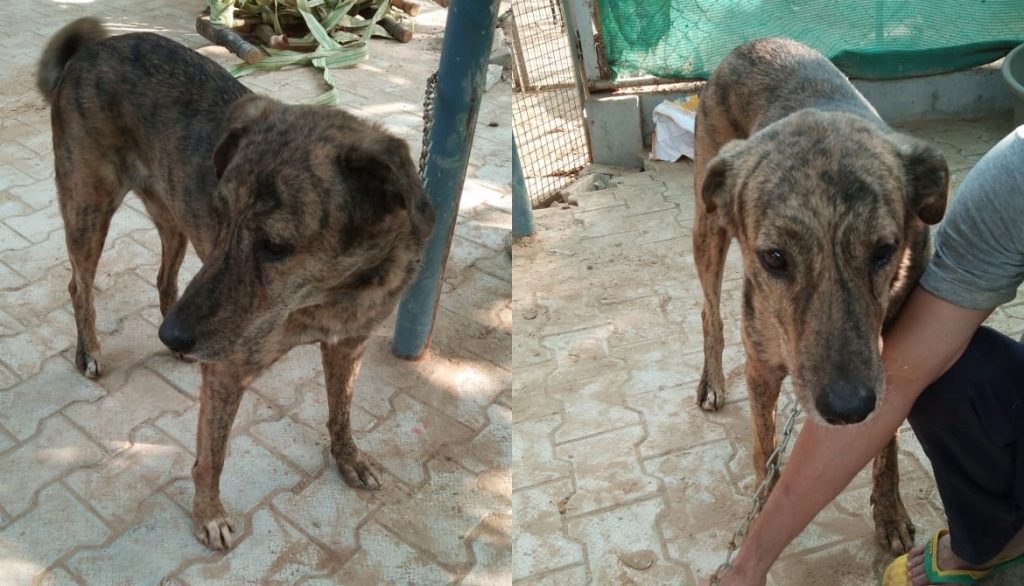 Brindle beauty Ghodu has found the secret to a happy existence. The kitchen at the shelter. He was brought in from the neighborhood colony next to the shelter when he was hit and run by a car. After he recovered from his injuries, he was dropped back to his territory, but little did we know that he was already in love with the menu at the shelter. So back he was. With soulful eyes that can melt any heart, he sits outside the kitchen and is generally a loner who is happy in his own company and two BIG MEALS a day.