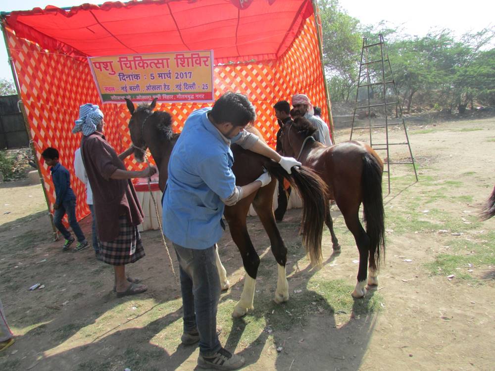 A typical week begins on Monday spent in the Shahdara, Seelampur and Turkman gate areas of Delhi. These visits mostly cater to the tonga (horse drawn carriages) stands in the area. Since the equine team has been catering to these stands for eleven odd years on a regular weekly basis, the locals in this area are well aware of the services being provided and people often come from much farther away to avail treatment. Almost all stands have equine owners coming from a distance of ten kilometres radius and availing of the services provided by the equine team. Over the week the team travels to Gurgaon, Faridabad, Ballabgarh, Jewar, Mathura, Bharatpur to Agra, covering many big and small stands in between as well as attending to any new emergencies in Delhi.
